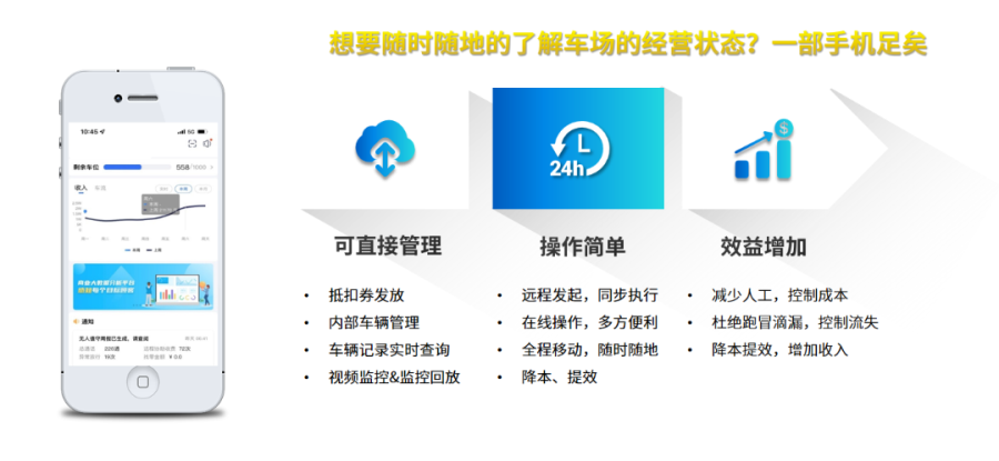 - 此外,想要隨時隨地了解車場的運(yùn)營情況,僅需一個停車場云助手APP就能實現(xiàn)車場、設(shè)備、系統(tǒng)管理。無論在何種場景,管理員通過APP打開“視頻監(jiān)控”功能,就可實時查看街區(qū)內(nèi)所有出入口的情況。不僅如此,車場管理方用手機(jī)即可接收運(yùn)營報表、異常報警等信息,停車場日常數(shù)據(jù)清算及對賬工作均由系統(tǒng)自動完成,不僅滿足了車道上的所有管理需求,同時還降低了車場的管理成本,真正做到對車場賦能,讓企業(yè)收益。